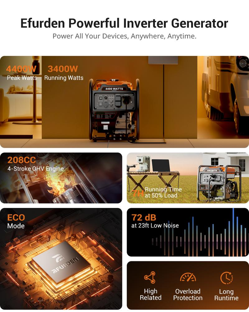 4400 Watts Off-Grid Portable Generator Outdoor Power Equipment
