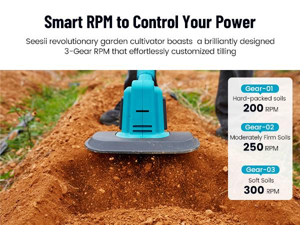 Electric Tiller for Gardening, 300 RPM Rototiller Cordless Cultivator