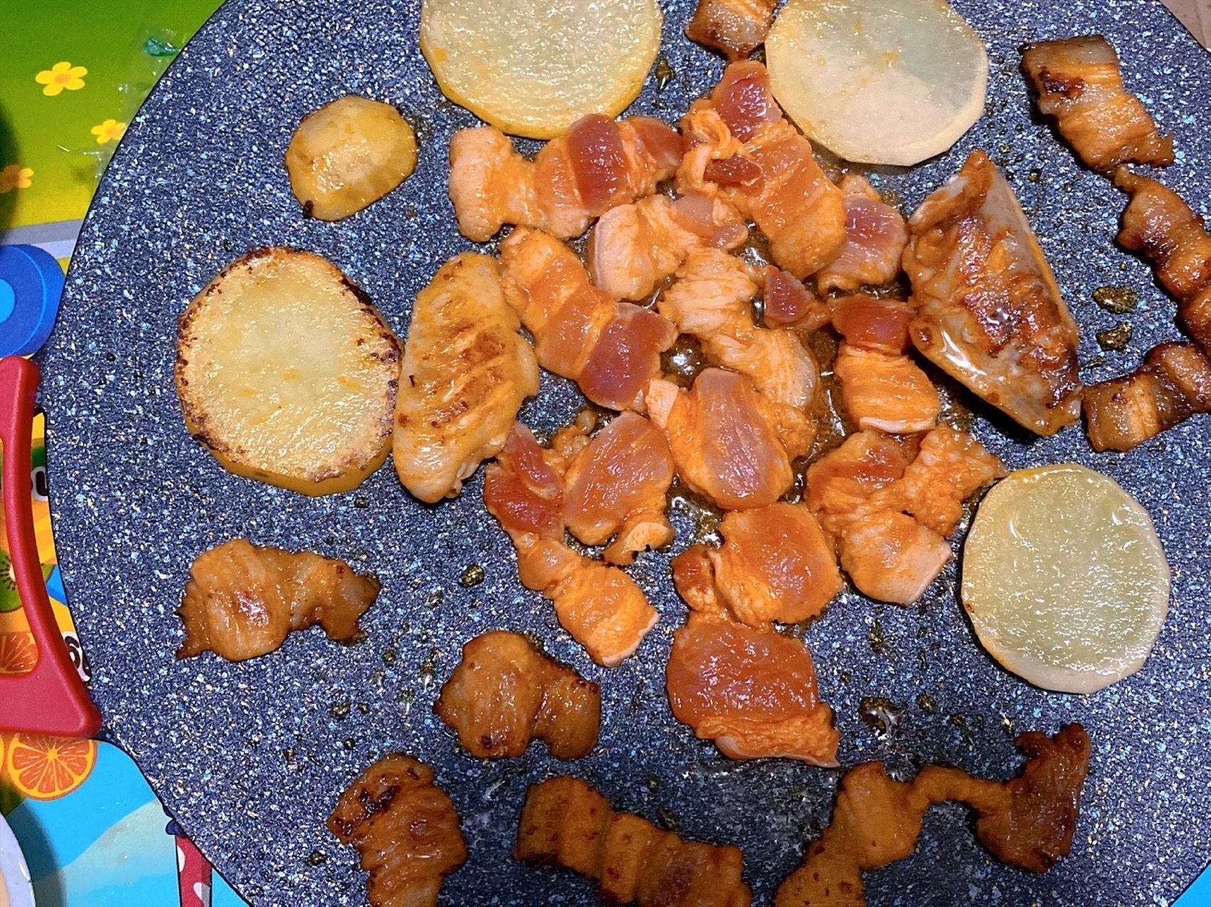 "The griddle heats up super fast and the adjustable temperature control is really handy. Made stir-fried rice cakes and veggies tonight,and everything came out evenly cooked.
