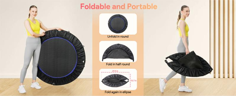 48" Rebounder Trampoline Foldable for Adults Max Load 450lbs