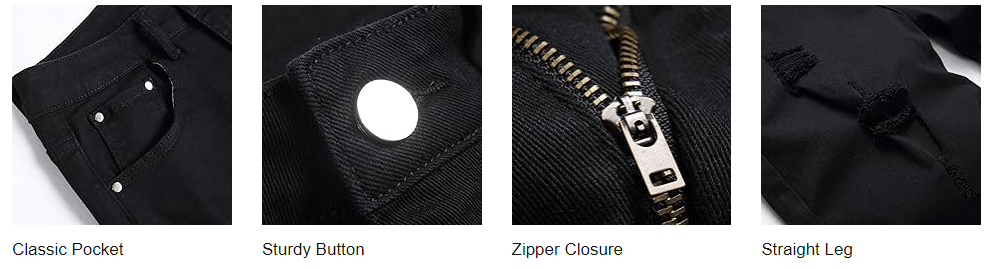 Zipper fly & button closure. 5 deep pockets for keys, phone, wallet and other essentials